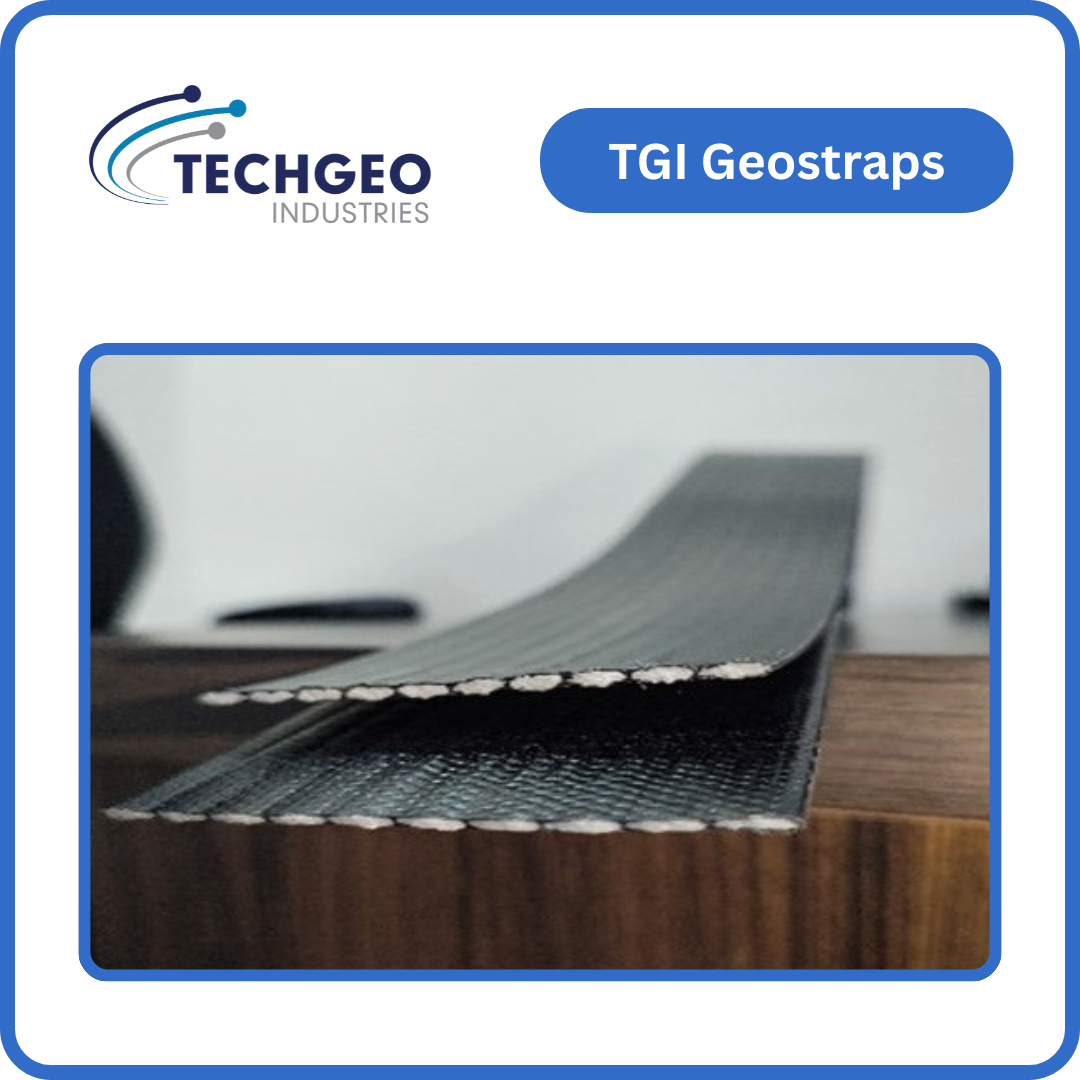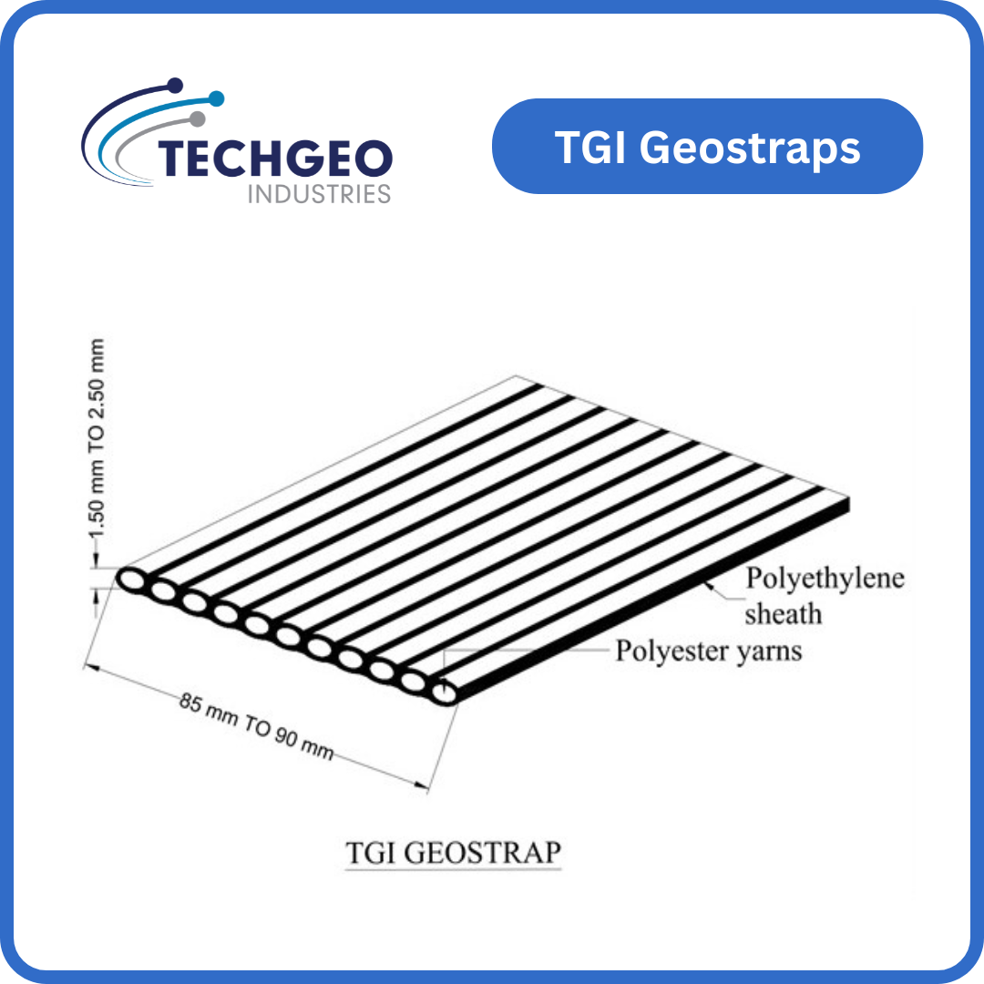 Flat webbing-type straps made from high-tenacity polyester yarn tendons, fully encased in a linear low-density polyethylene sheath for protection.